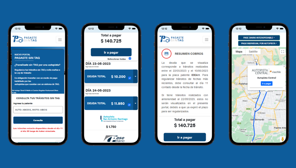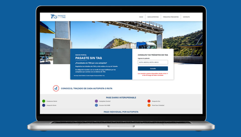 La solución se integra con múltiples autopistas concesionarias, asegurando la actualización de los cobros y optimizando la experiencia del usuario al simplificar la gestión de pagos para conductores sin contrato TAG vigente.