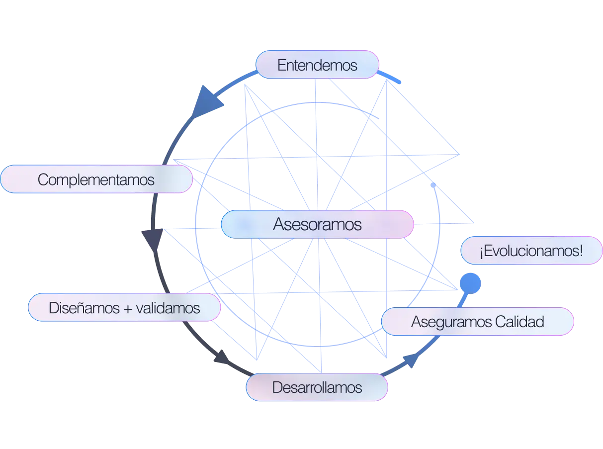 Nuestra metodología combina enfoques ágiles, tradicionales y una asesoría experta para diseñar la mejor solución para ti.