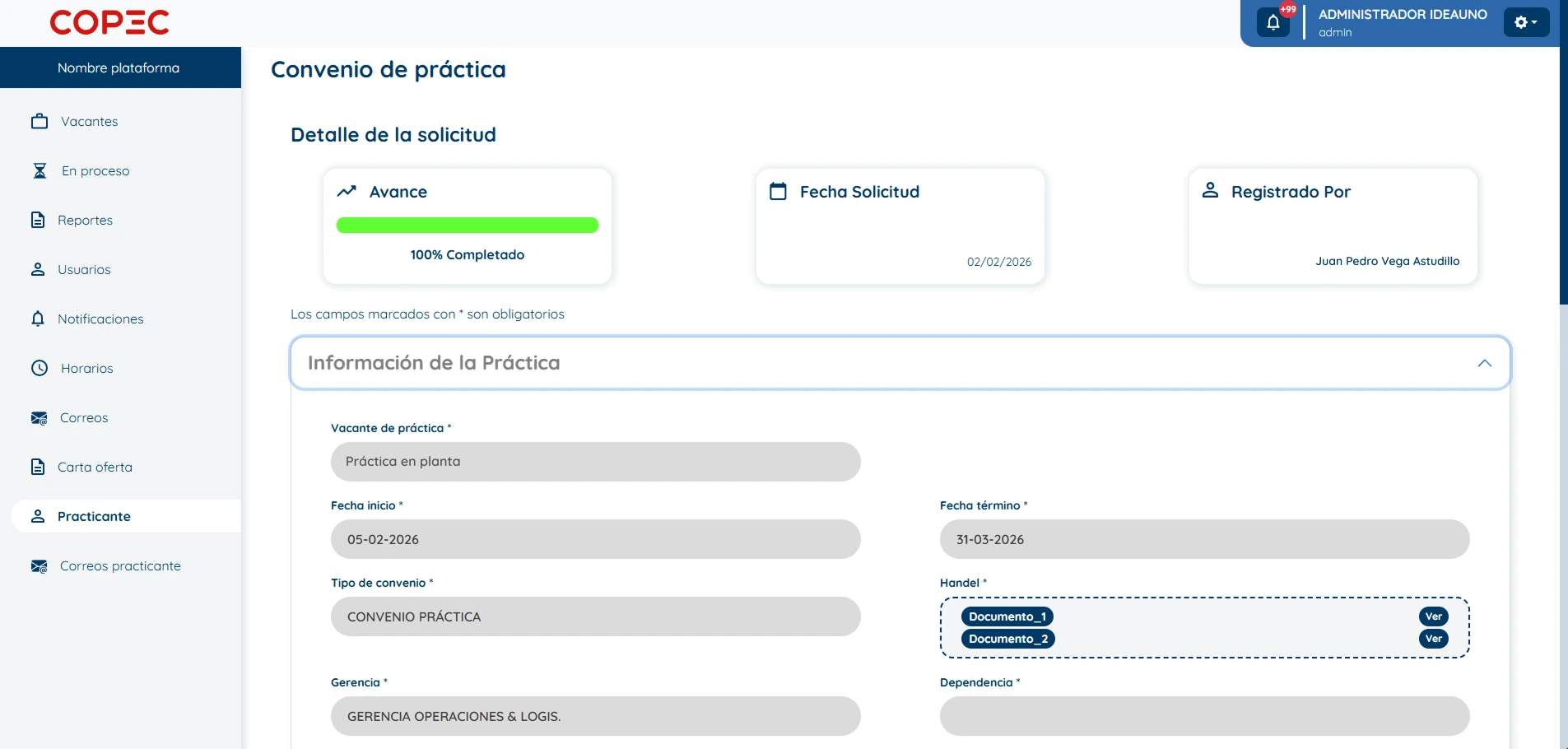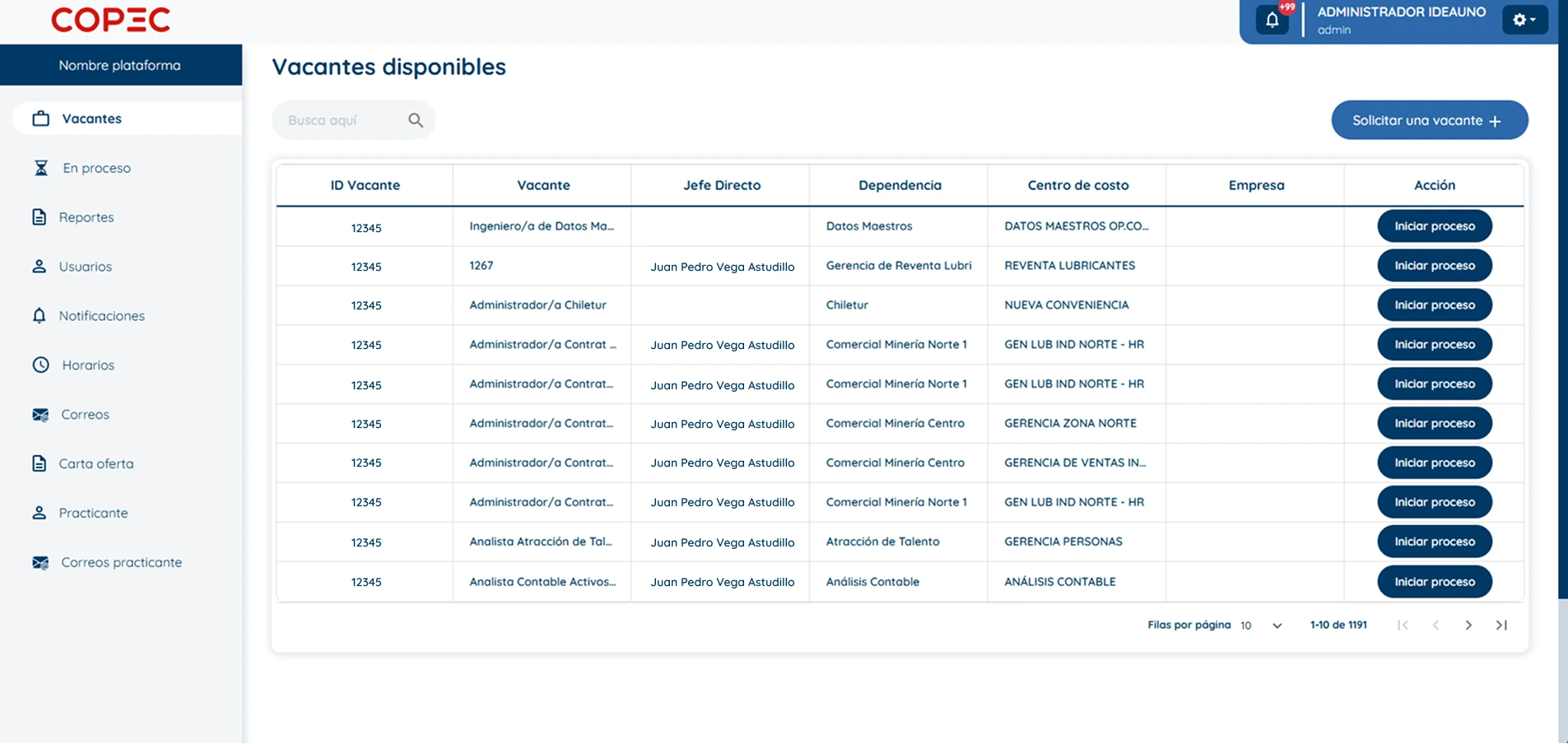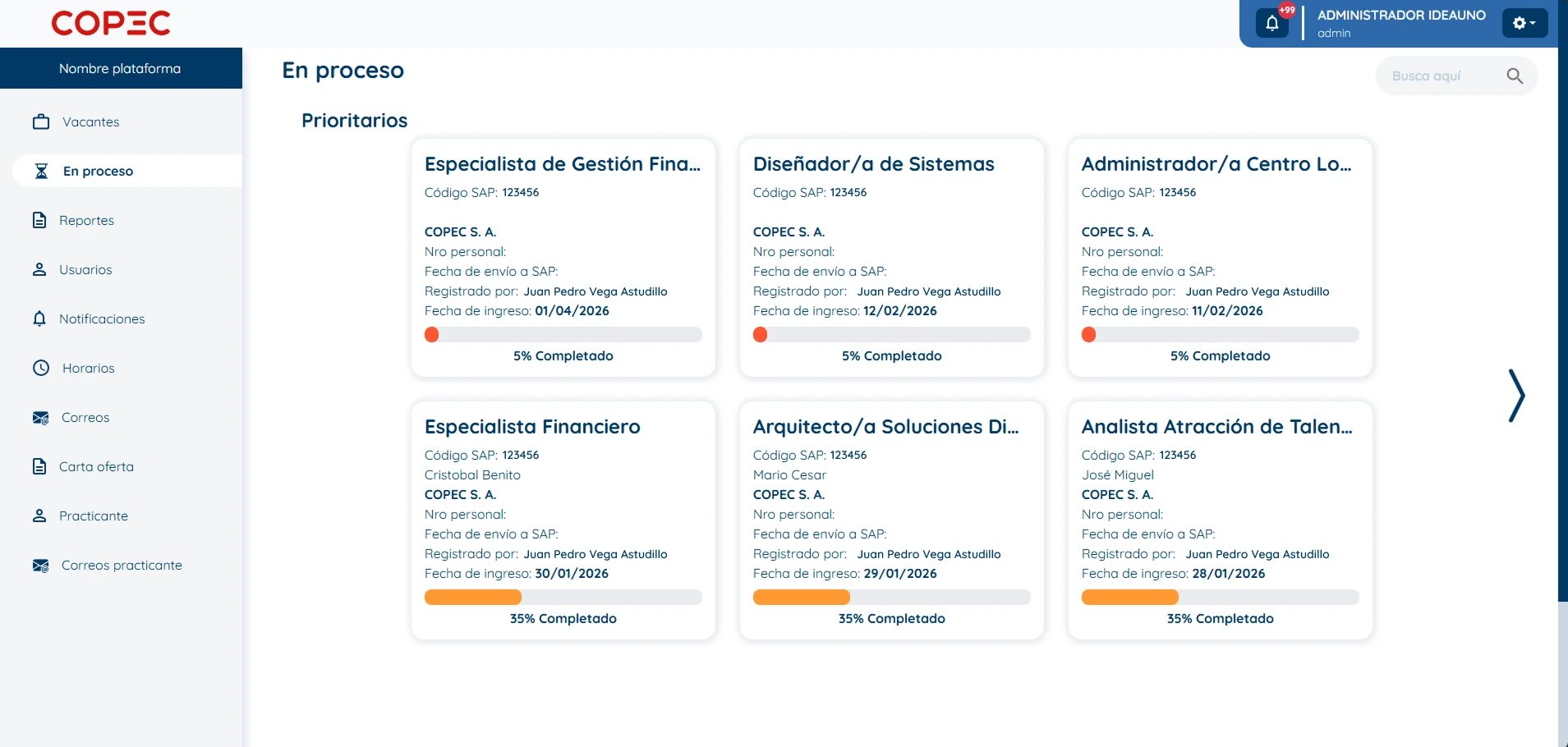 Desarrollamos un sistema digital que estandariza además de acelerar el proceso de reclutamiento y contratación en Copec. La plataforma permite la integración con servicios externos como SAP y Webdox, facilitando la gestión documental, la firma digital y la conexión con los sistemas internos de la empresa. Esto mejora la eficiencia operativa y reduce tiempos en la contratación de talento, asegurando un flujo de trabajo más ágil y automatizado.